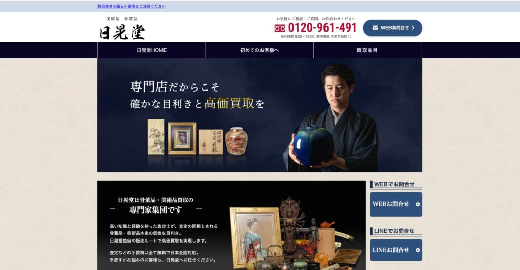 「日晃堂」は、骨董品・古美術品の買取に特化した専門業者です。豊富な知識と経験を持つ査定士が在籍し、鑑定が難しい骨董品や美術品の“本来の価値”を丁寧に見極めたうえで、妥協のない買取価格を提示します。