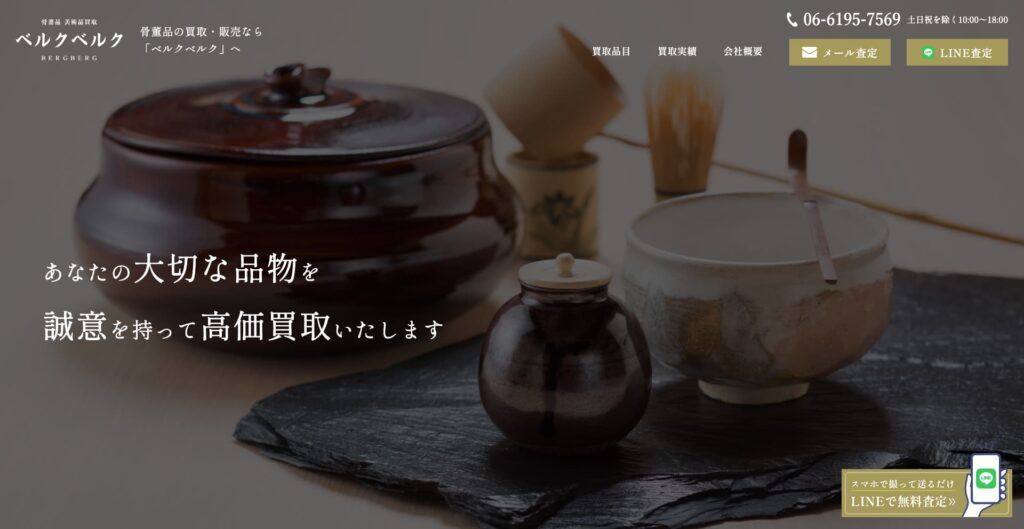 創業以来25年以上にわたる実績と、豊富な査定経験を持つプロの鑑定士が在籍しており、骨董品の真の価値を見極め、高額査定が可能です。査定は無料で、店頭持ち込みだけでなく、出張買取にも対応。柔軟に応じており、全国幅広いネットワークを活かしたサービス展開が強みです。
