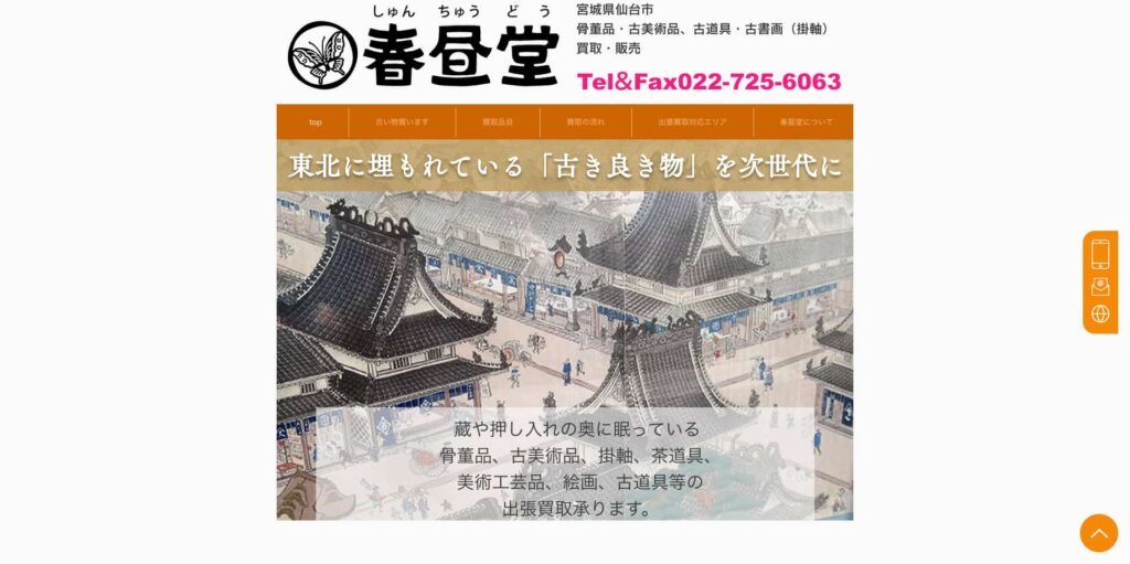 宮城県仙台市に拠点を構える「春昼堂」は、骨董品や古道具の販売・買取を手がける地域密着型の骨董店です。書画や陶磁器、古美術品など幅広いジャンルに対応し、専門知識をもとに一点一点丁寧に査定を行っています。