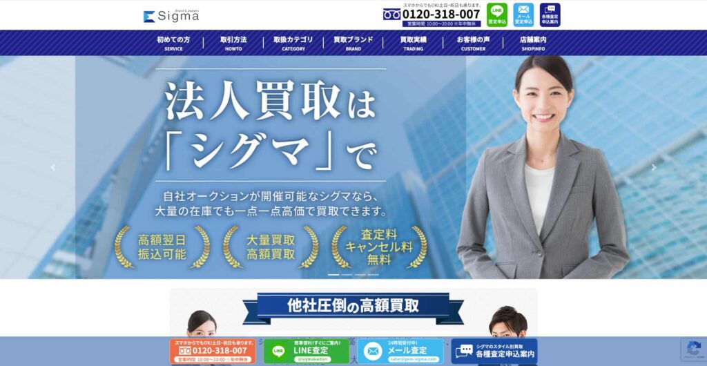 「シグマ」は、ブランドバッグを含む幅広いジャンルの高価買取サービスを提供しています。世界各国の相場データやオークション情報を駆使し、最大限の高額査定を可能にする仕組みを構築しています。
