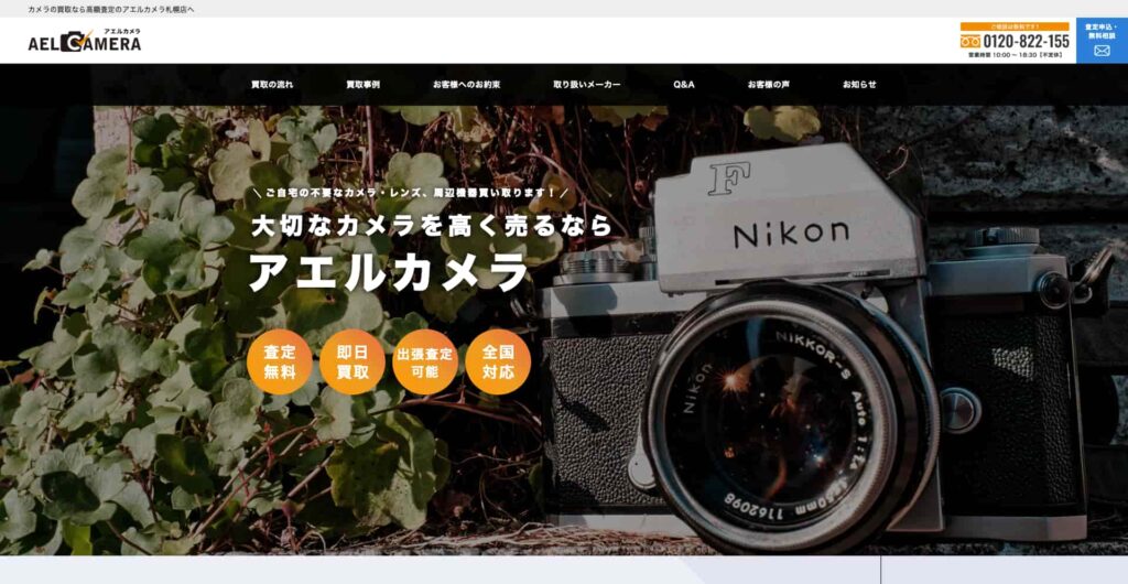 「アエルカメラ札幌店」は、デジタル一眼レフからフィルムカメラ、アンティークや中判・大判まで、あらゆるカメラ本体を高額査定するカメラ買取の専門店です。中古品に詳しいリユース営業士、遺品鑑定士、フォトマスター検定(2級)取得者などのプロフェッショナルが、最新機からヴィンテージまで、価値を正確に評価する技術を有しています。