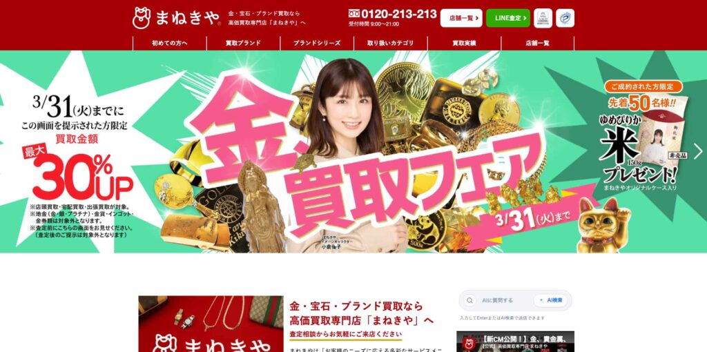 | 対応買取方法 | 店頭買取、出張買取、メール査定、LINE査定 |