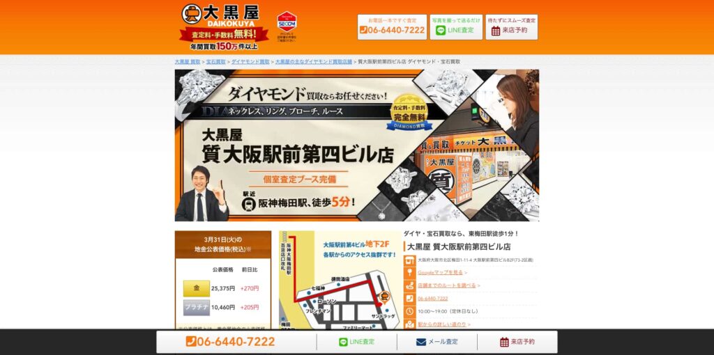 大阪市を拠点とする「大黒屋 質大阪駅前第四ビル店」は、全国展開の大手質・買取サービスの一つで、特に宝石買取において高い専門性と実績を誇ります。経験豊富な査定士が在籍し、カラットや透明度、カットなど宝石の品質に加え、デザイン性やブランド価値まで総合的に評価。