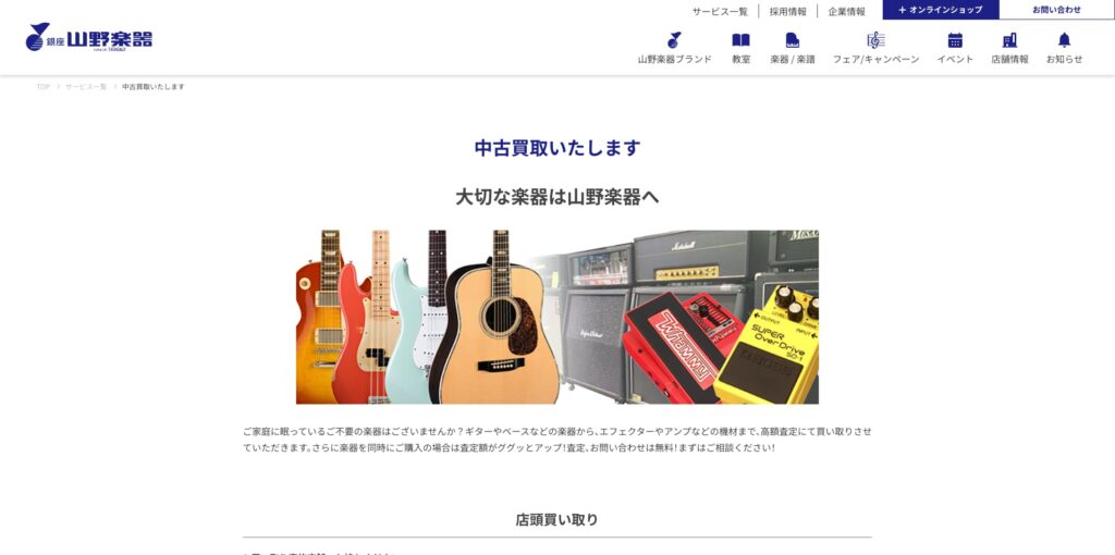 また、店頭買取に加え出張買取や宅配買取にも対応しており、大型の楽器や複数の楽器をまとめて売りたい場合にも利用しやすい買取店です。