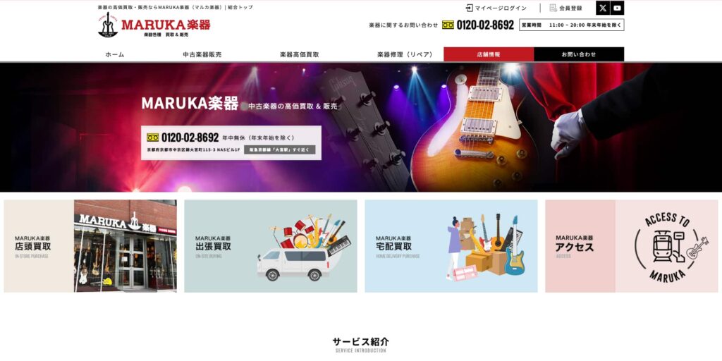 「MARUKA楽器」は、ギターやベース、管楽器など楽器の買取・販売を行う専門店です。エレキギターやアコースティックギターはもちろん、アンプやエフェクター、PA機器、楽器パーツやケースまで、関連アイテムの買取サービスを展開しています。