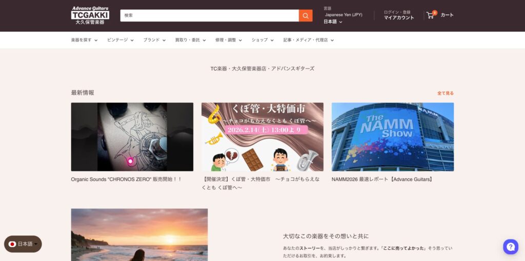 「TC楽器」は、中古・ヴィンテージ楽器専門店で、ギターを中心に幅広い楽器の買取・販売を行う楽器店です。