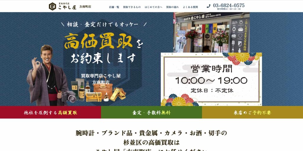 おすすめポイント土日祝対応、地域密着型、全国展開ならではの安定した相場力と販路、経験豊富な鑑定士による高額査定