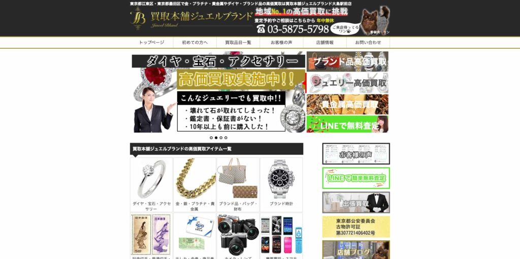 東京都江東区に店舗を構える「買取本舗ジュエルブランド」は、ダイヤモンドや色石ジュエリーなど宝石買取に強みを持つリサイクルショップです。地域No.1の高価買取を目指し、豊富な販路と市場データを活かした査定により、他店に負けない価格提示を実現。