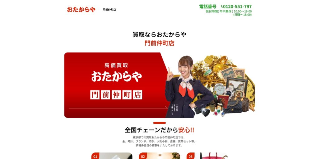 おすすめポイント即日現金化可能、地域最高価格買取、年中無休、豊富な販路の保有、地域密着型