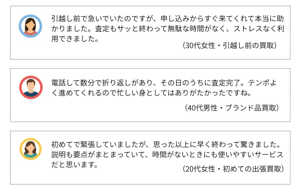 バイセルは「とにかく早い」という良い口コミが本当に多いですね。申し込み当日に来てくれたり、電話後すぐに折り返しがくるなど、対応のスピード感は業界でも上位クラスです。