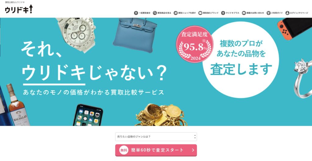 ウリドキは、専門性のある業者・査定士の査定を一括で比較できるサービスで、店舗へ直接足を運ぶ必要はありません。スマホやパソコンから簡単に申し込みでき、査定内容や条件を見比べながら売却先を選べるのが特徴です。