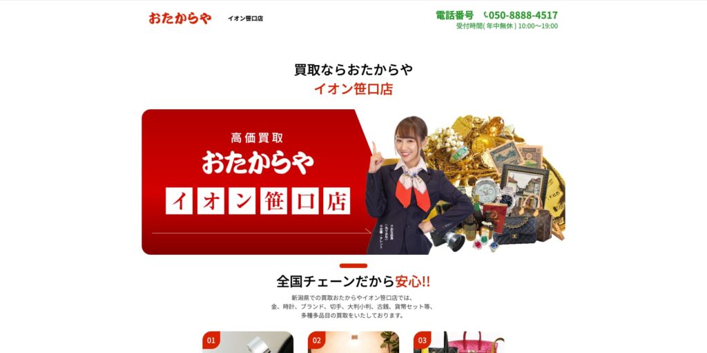 新潟県新潟市にある「おたからや イオン笹口店」は、全国に1,600店舗以上を展開する大手買取専門店の一角として、豊富な取引データとネットワークを活かした査定を強みとしています。