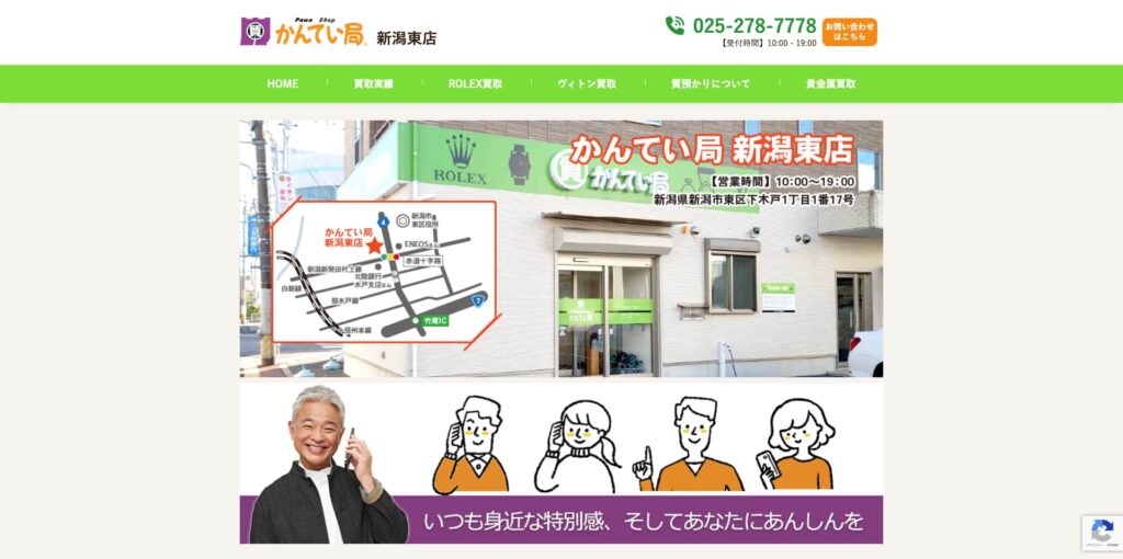 「質屋かんてい局 新潟東店」は、新潟県新潟市にある信頼と実績のあるリサイクル質屋で、特にブランド時計の買取・質入れサービスに力を入れている店舗です。