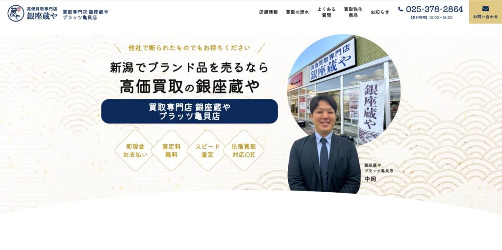 新潟県新潟市にある「銀座蔵や プラッツ亀貝店」は、ブランド時計の買取に力を入れている買取専門店です。経験豊富な査定士が在籍し、時計の状態や市場相場、ブランド価値を丁寧に見極めたうえで適正価格を提示してくれるのが特徴です。