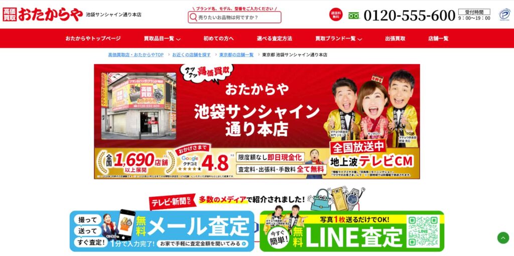東京都豊島区にある「おたからや 池袋サンシャイン通り本店」は、全国に1,600店舗以上を展開する大手買取専門店の一角として、豊富な取引データとネットワークを活かした査定を強みとしています。